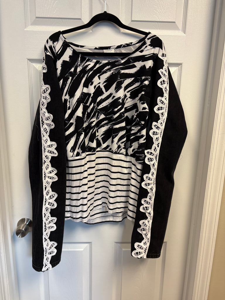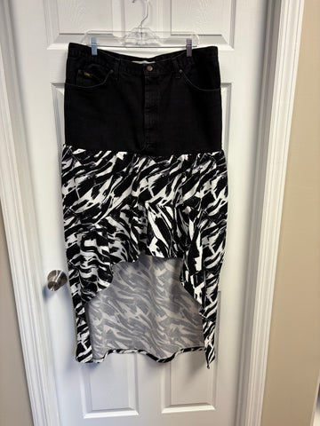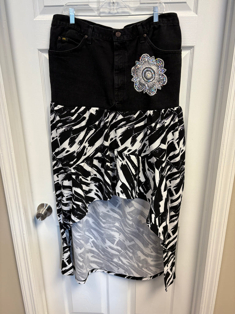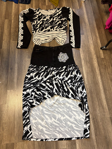 Ladies super cute black and white denim shirt and blouse set. Upcycled from vintage LEE jeans. Ladies size 14-18. Too has stretch.