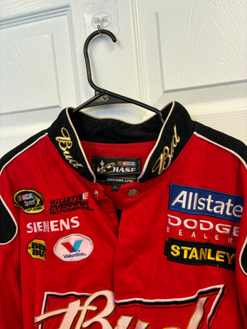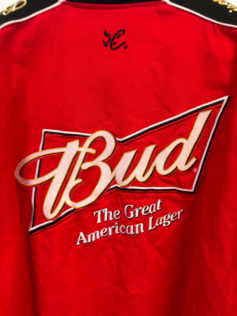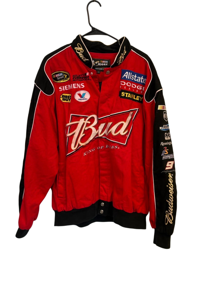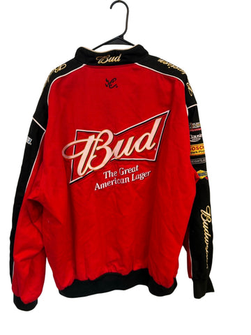 Men's multicolored nascar Budweiser racing graphic varsity style bomber jacket. Excellent condition. Men's size 2XL.