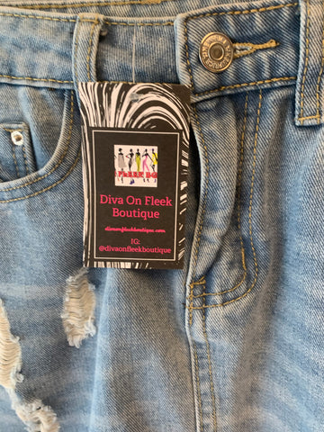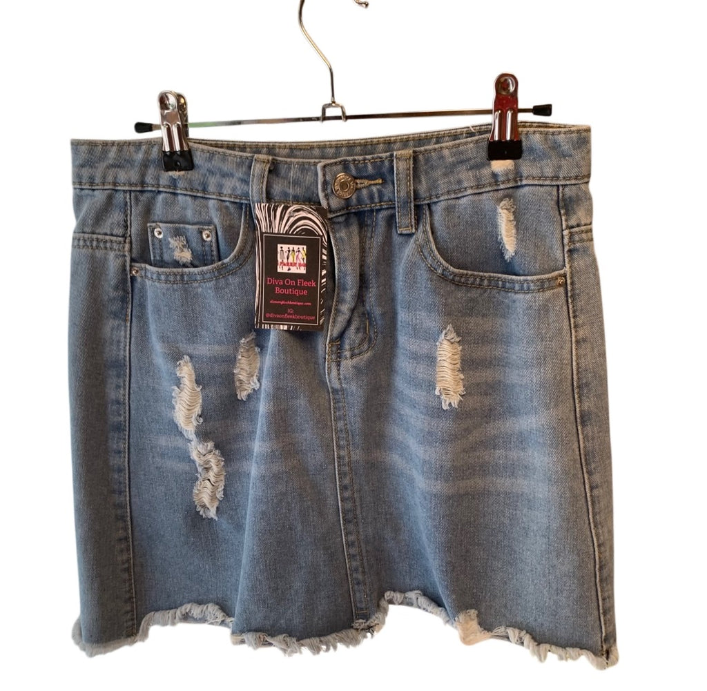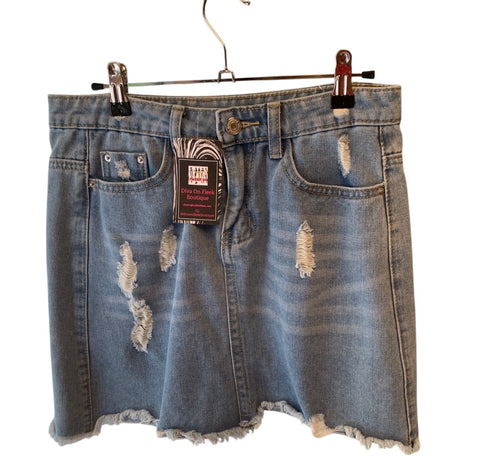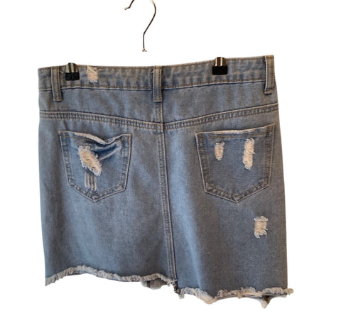 Ladies super cute light stonewash denim distressed skirt. Excellent condition. Ladies size medium.