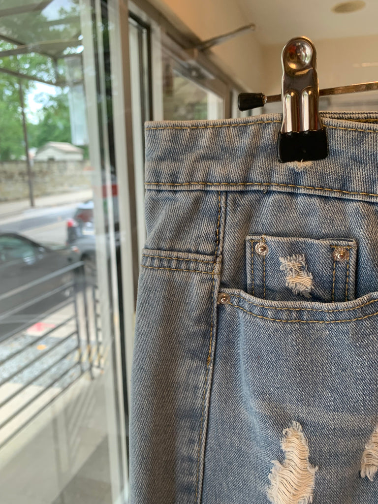 Distressed Denim Skirt