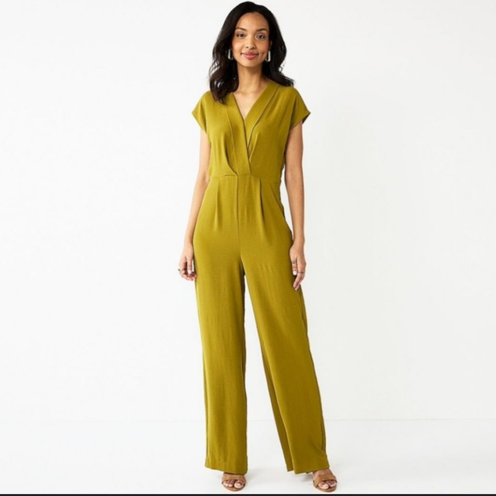 Ladies super cute pea green short sleeve jumpsuit by Nine West. Excellent condition. Ladies size large.