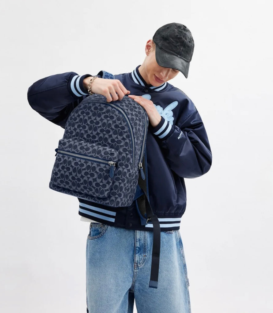 Unisex Adult Super Cute Coach Charter Backpack in Signature Denim.