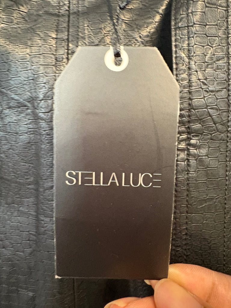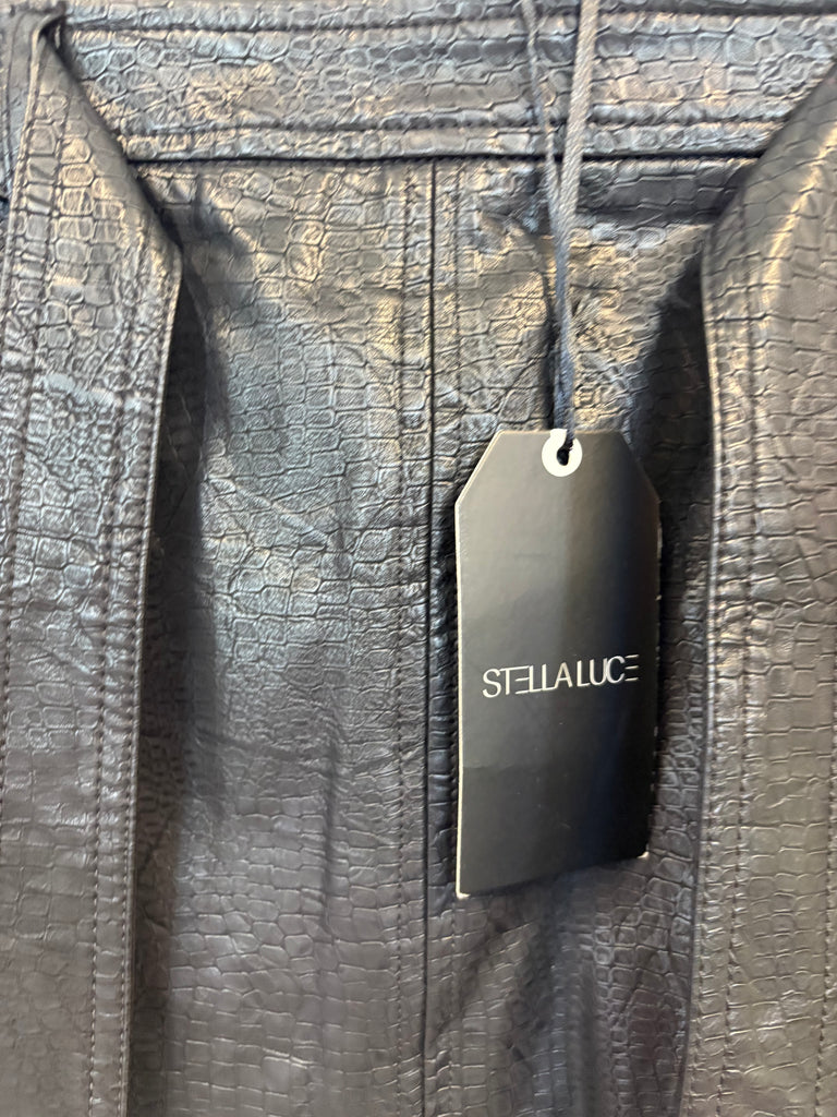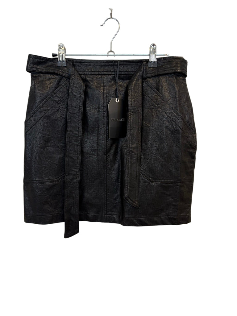 Ladies super cute black vegan leather skirt by Stella Luce. Excellent vintage condition. Ladies size medium. New with tags.Waist 16"Length 17"