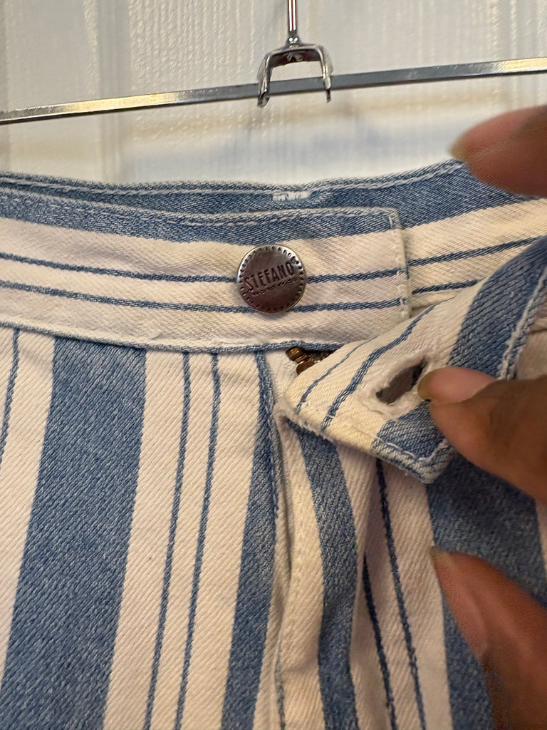 Ladies super cute blue and white striped denim vintage shorts by Stefano. Excellent vintage condition. Ladies size 28.